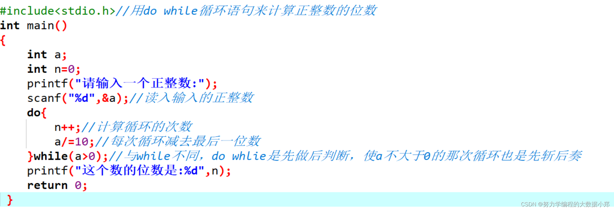 C语言的循环语句(while,for与 do-while循环)_利用while循环与for循环两种不同的循环模式求解:输入一个正整数,判断其 ...