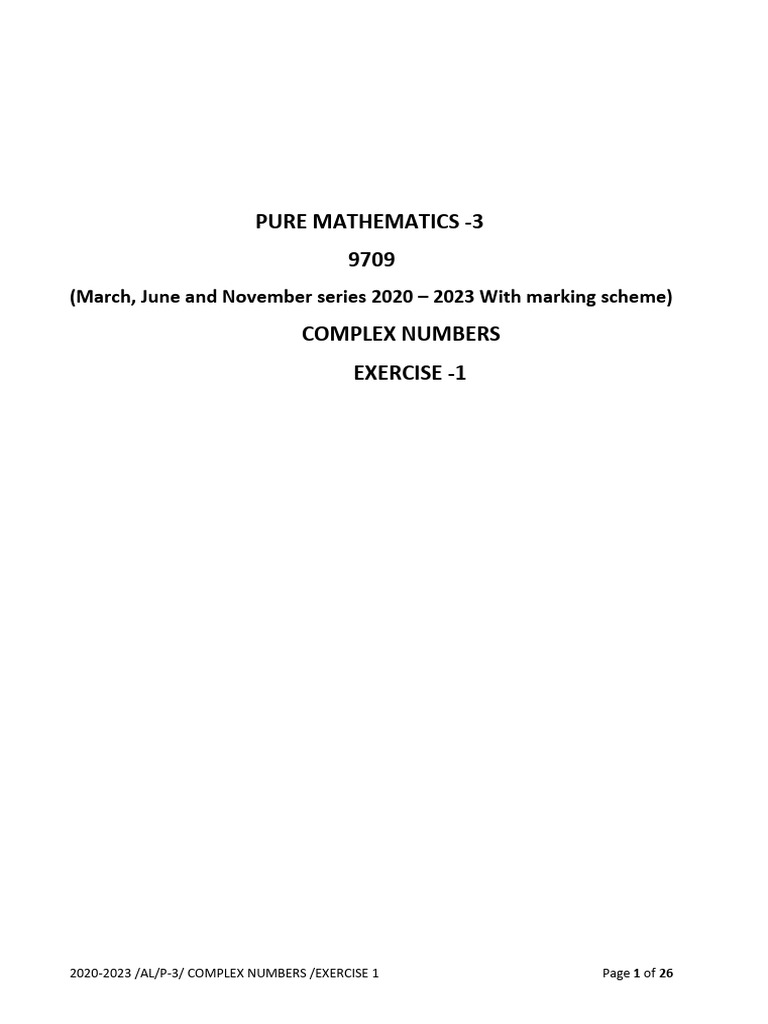 9709. P3. Complex Numbers. Exercise 3 Worked Solutions – Maths with David