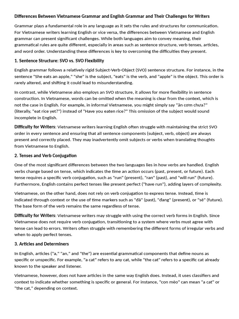 English Grammer Vs Vietnamese Grammar | PDF | Grammatical Tense ...