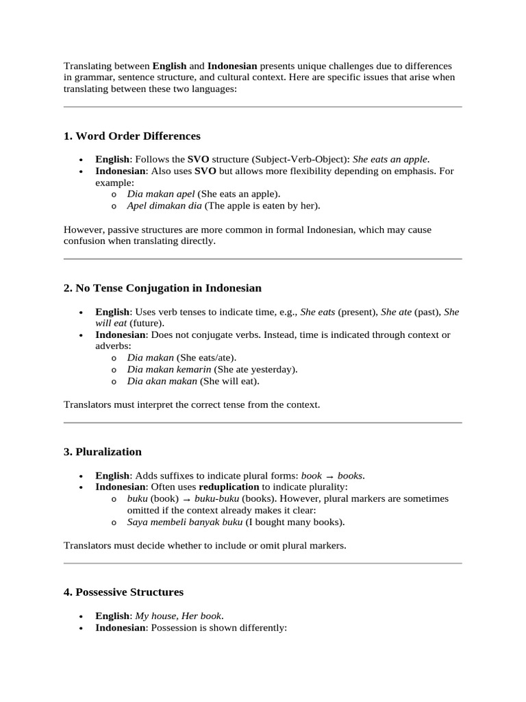 Translating Between English and Indonesian Presents Unique Challenges ...