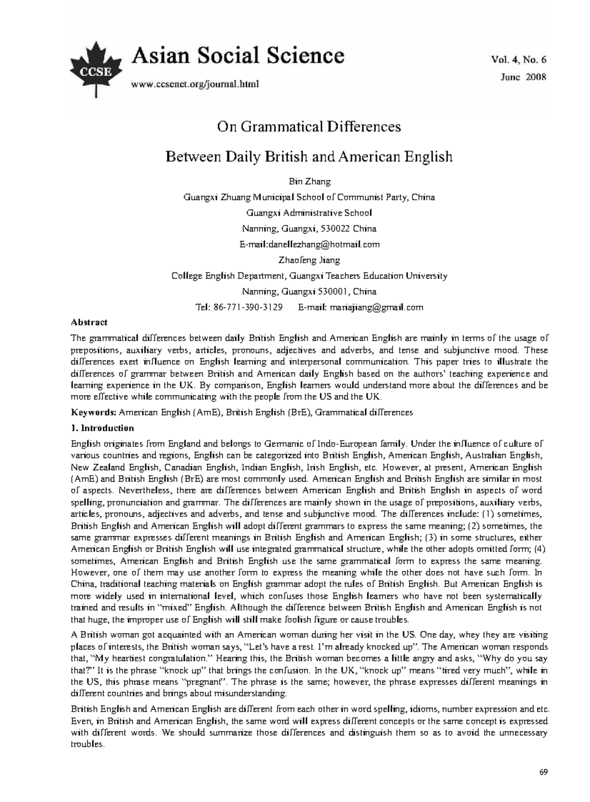Grammatical Differences in Daily British and American English (ENG 101 ...