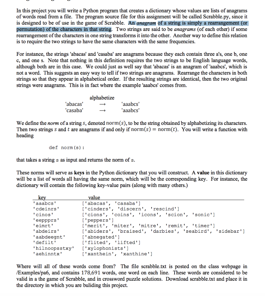 Solved Anagram Solver This project involves writing an | Chegg.com