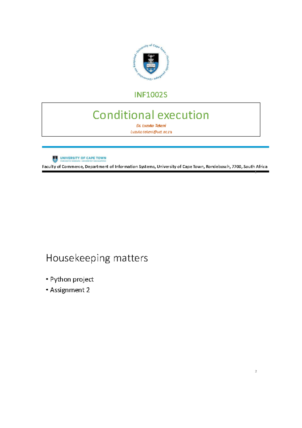 INF1002S Conditional Execution Notes - Dr. Luzuko Tekeni - Studocu