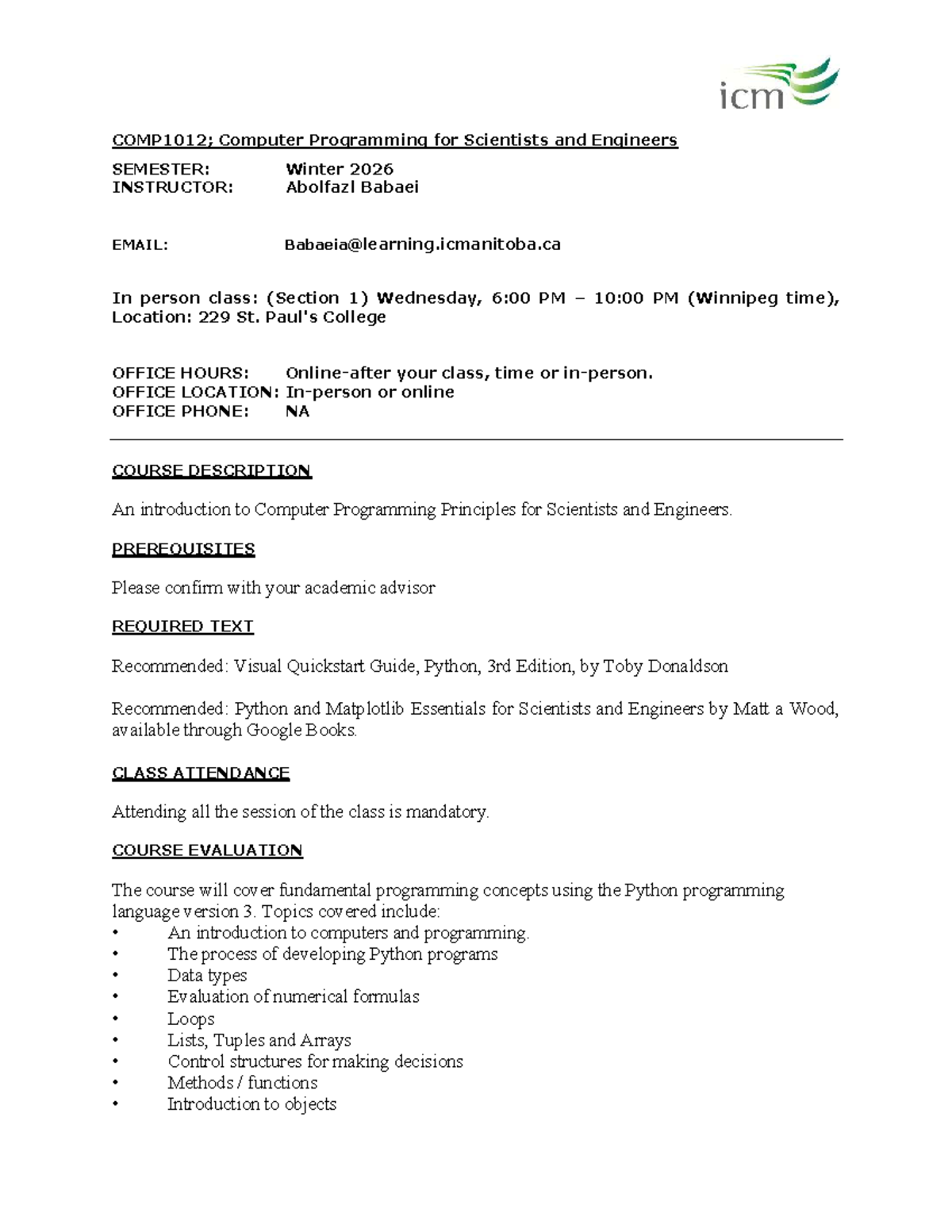 COMP1012: Computer Programming for Scientists and Engineers - Course ...