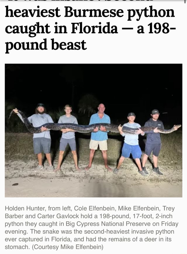 Heaviest Burmese python caught in Florida - a 198- pound beast Holden ...