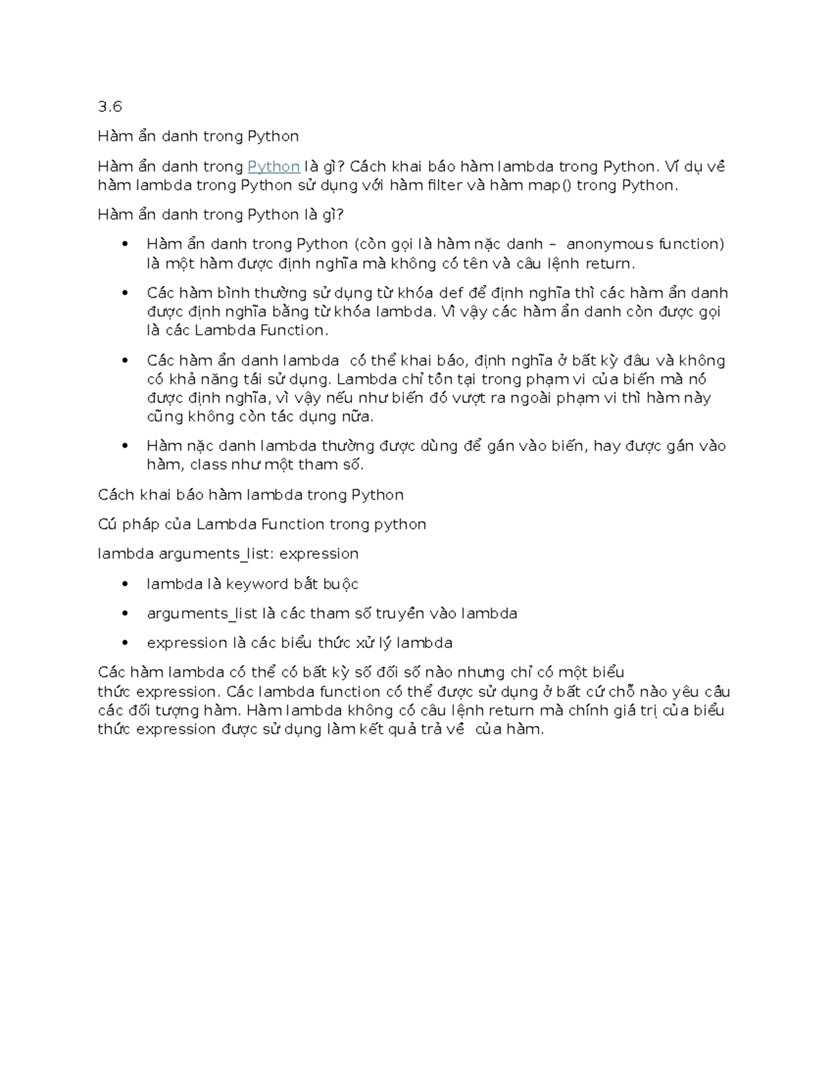3 - Hàm ẩn danh (Lambda Function) trong Python - Chương 3 - Studocu
