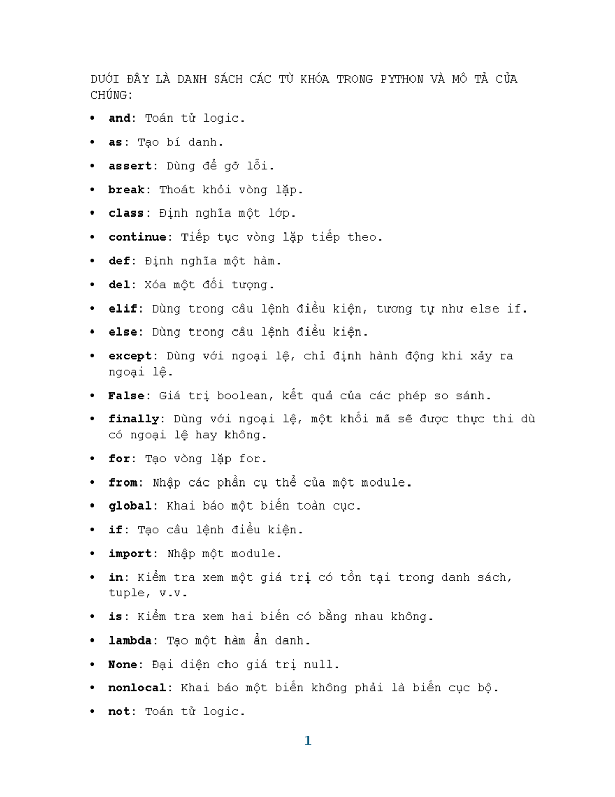 DANH SÁCH TỪ KHÓA VÀ HÀM TRONG PYTHON - TÀI LIỆU HỌC TẬP - Studocu