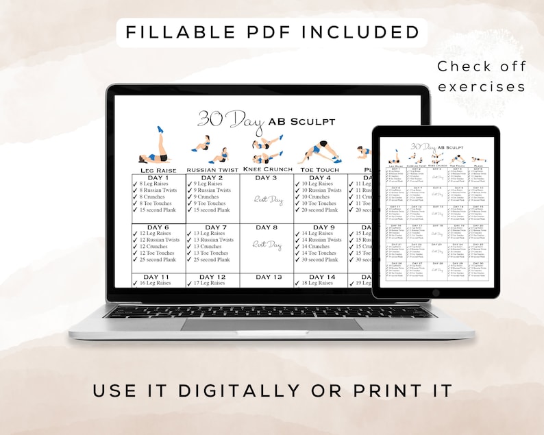 30 Day Ab Sculpt Workout Program Printable + Fillable PDF | Easy to ...