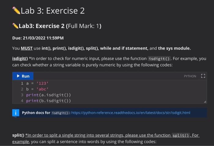 Python String Isdigit Function Example Solved Nab 3: Exercise 2 Lab3: