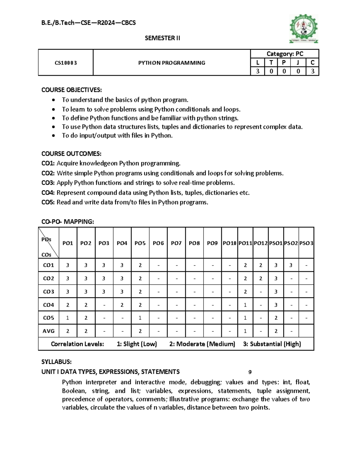 4. CS10003 - Python Programming - B.E./B—CSE—R 2024 —CBCS SEMESTER II ...