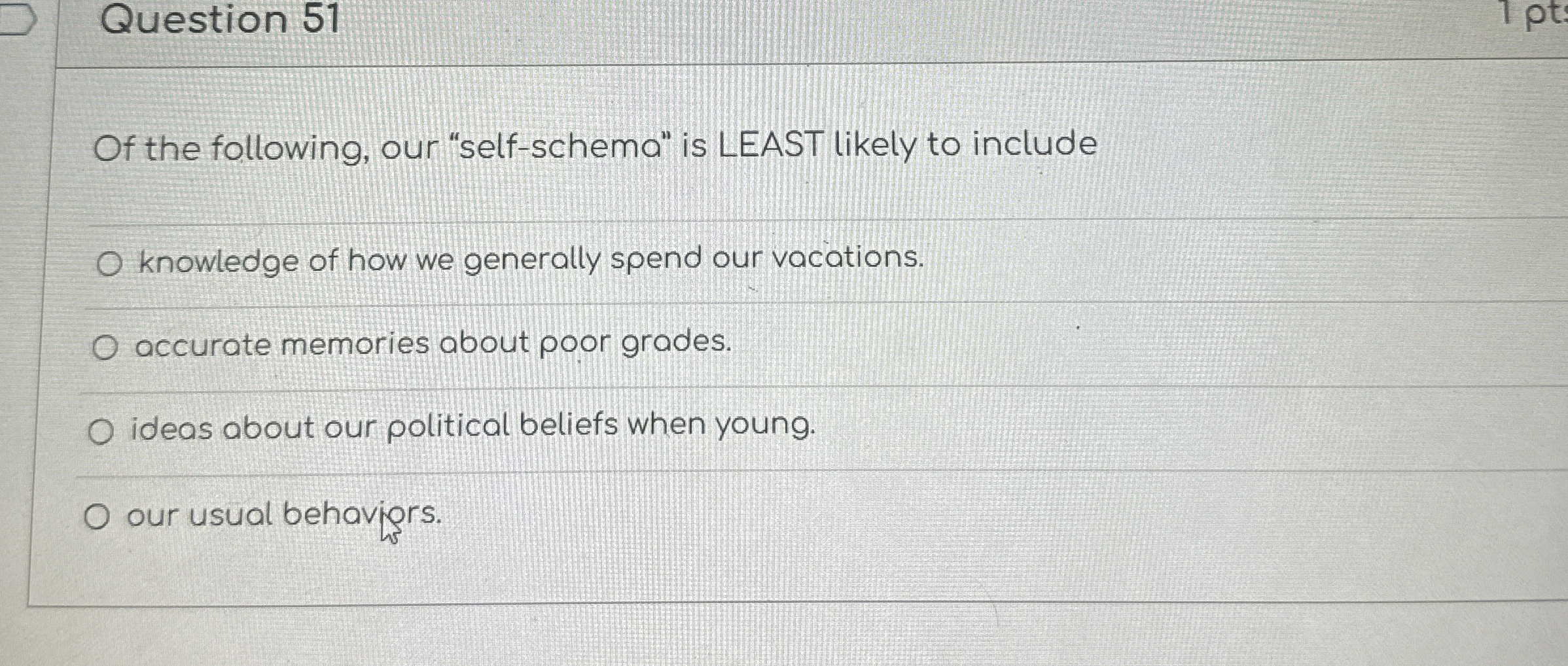 Solved Question 51f the following, our "self-schema" is | Chegg.com