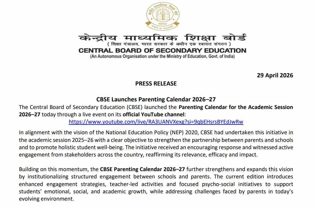 CBSE Parenting Calendar 2026-27: बच्चों के तनाव को कम करने और वेल-बीइंग ...