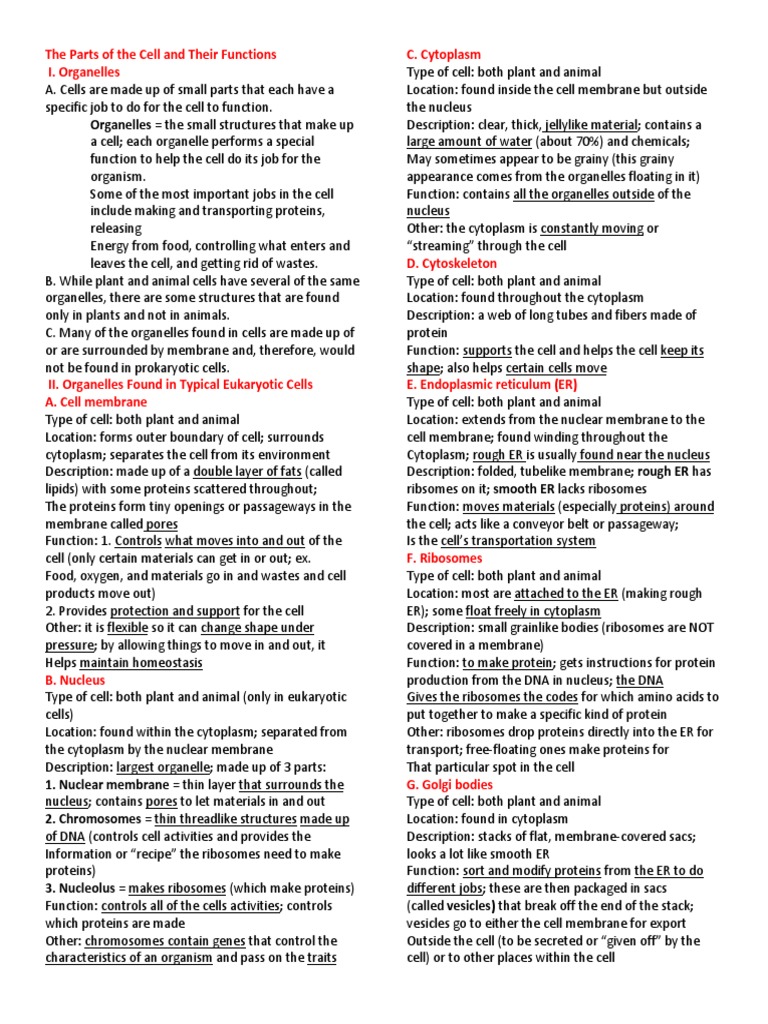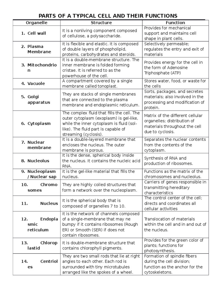 Parts Of Cells And Their Functions Pdf at Joseph Larrick blog