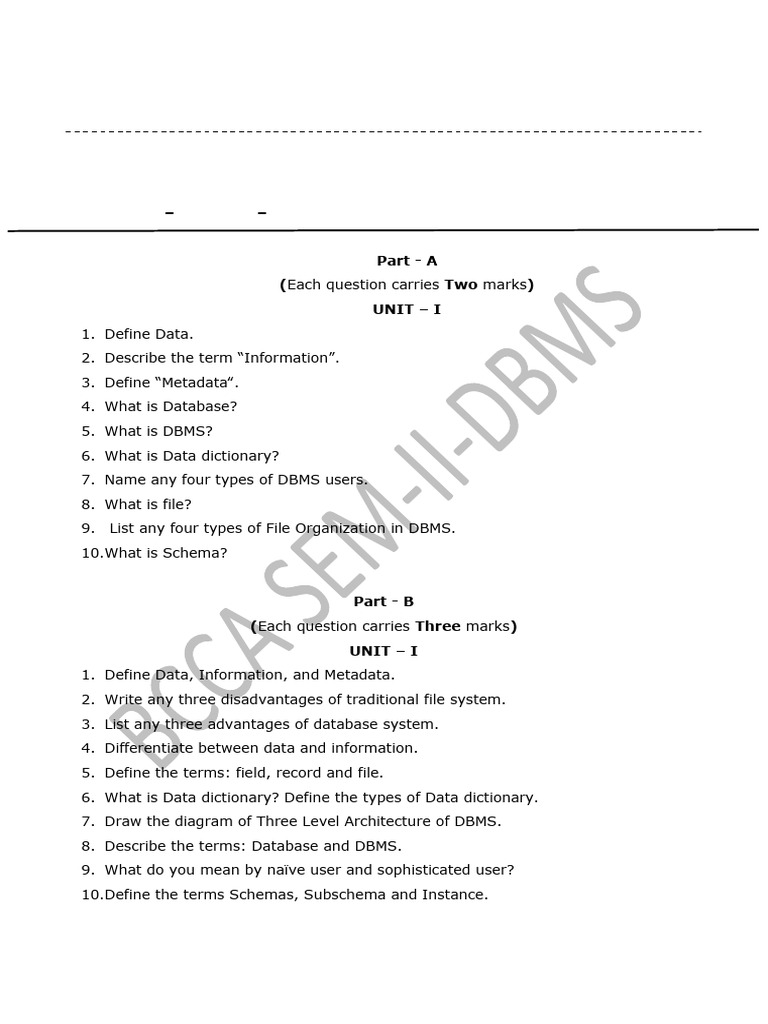 DBMS Question Bank - DBMS Question Bank Database Management System Set ...