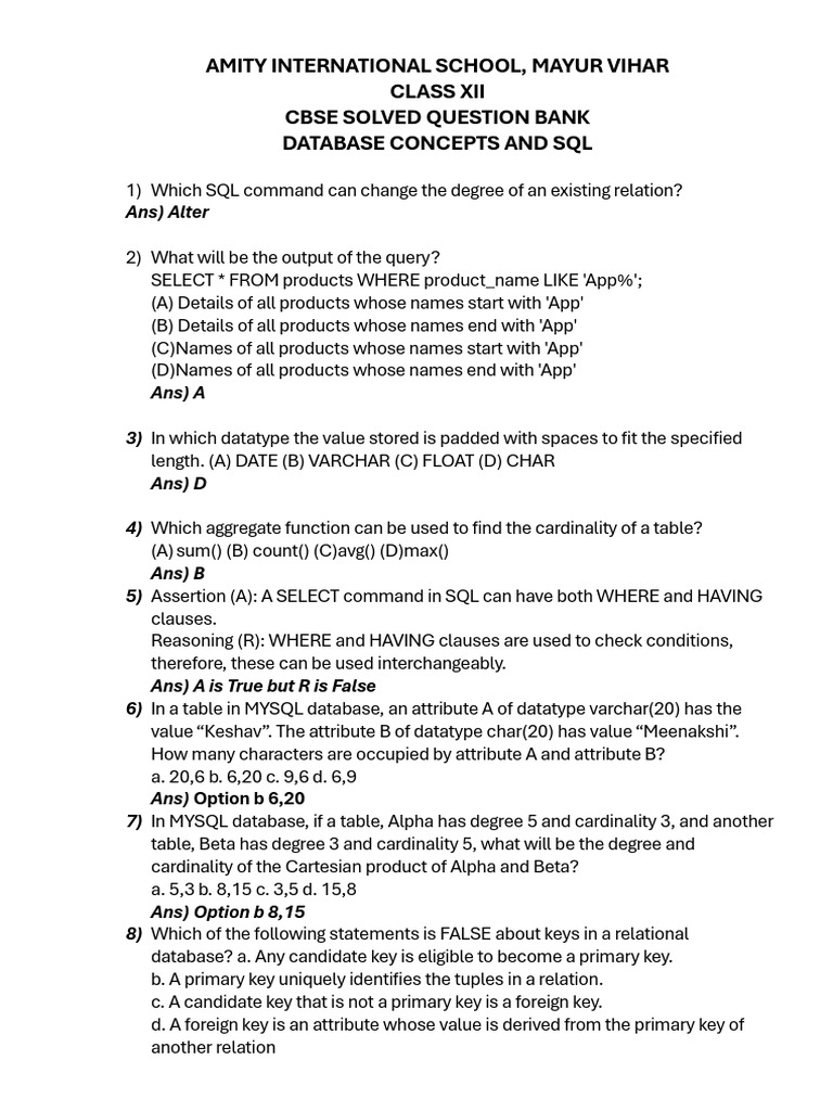Solved Question Bank - Database Concepts | PDF | Relational Model ...