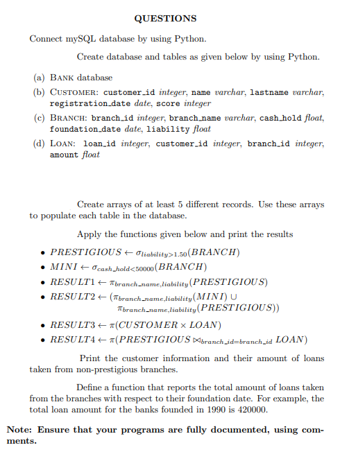 Solved QUESTIONS Connect mySQL database by using Python. | Chegg.com