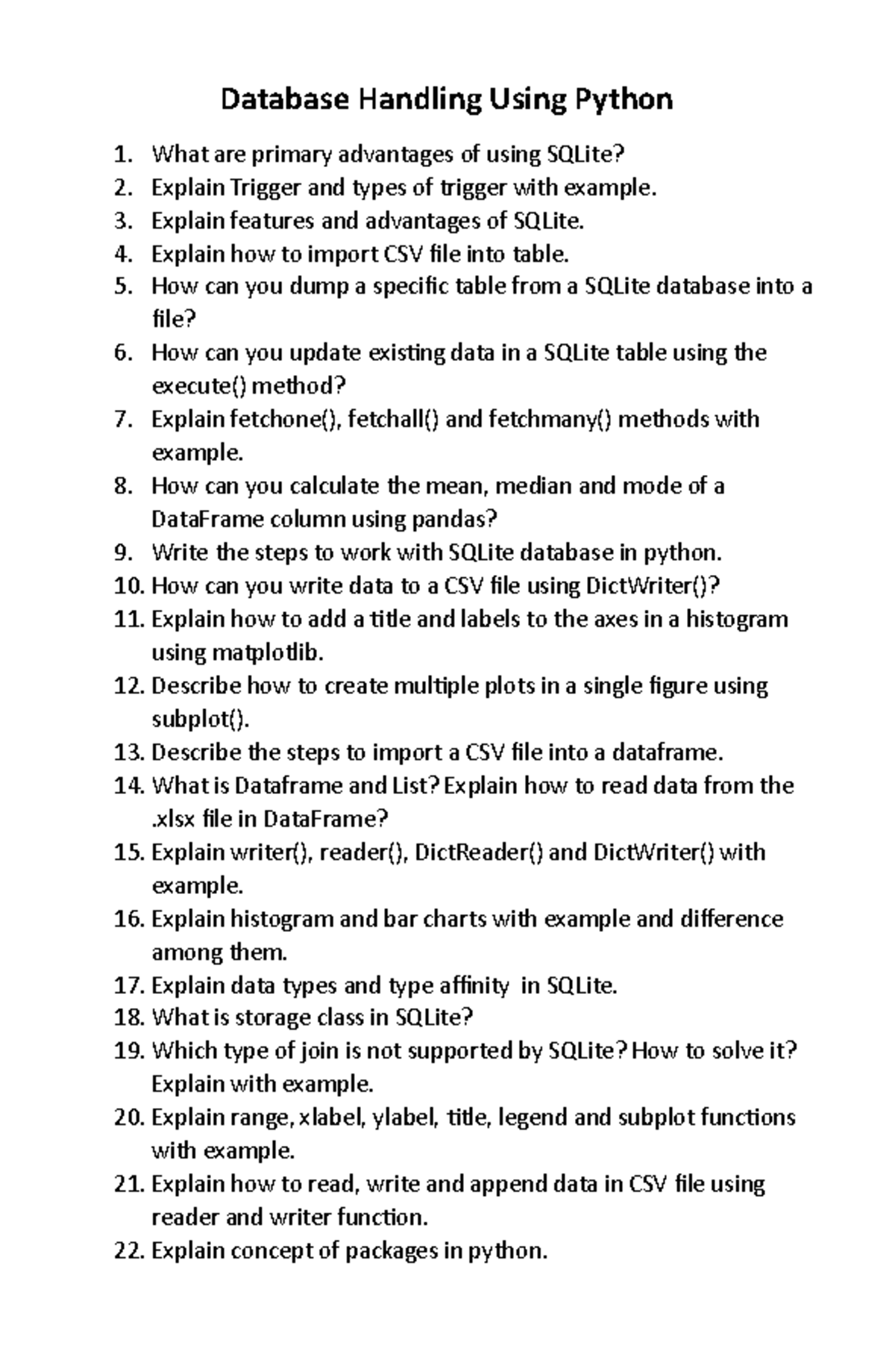 Database Handling Using Python: Key Concepts & Questions - Studocu