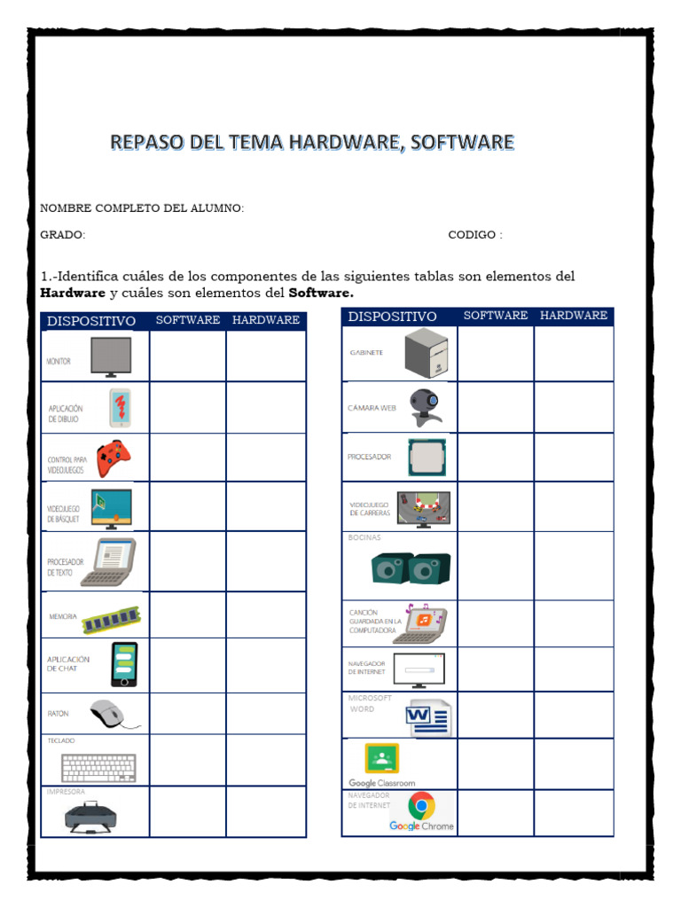 Harware y software worksheet