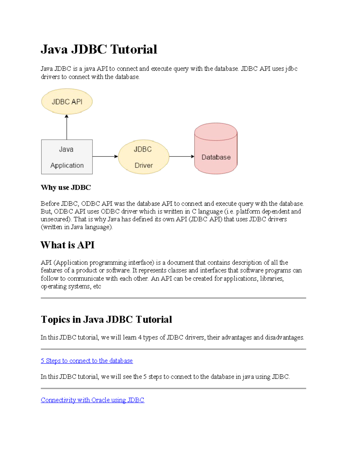 JDBC Tutorial - Comprehensive Guide on Java Database Connectivity - Studocu