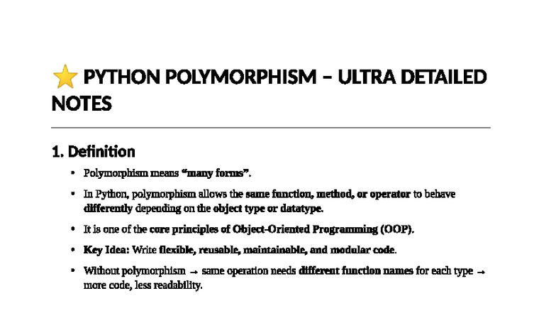 PYTHON POLYMORPHISM DETAILED NOTES AND EXAMPLES - Studocu