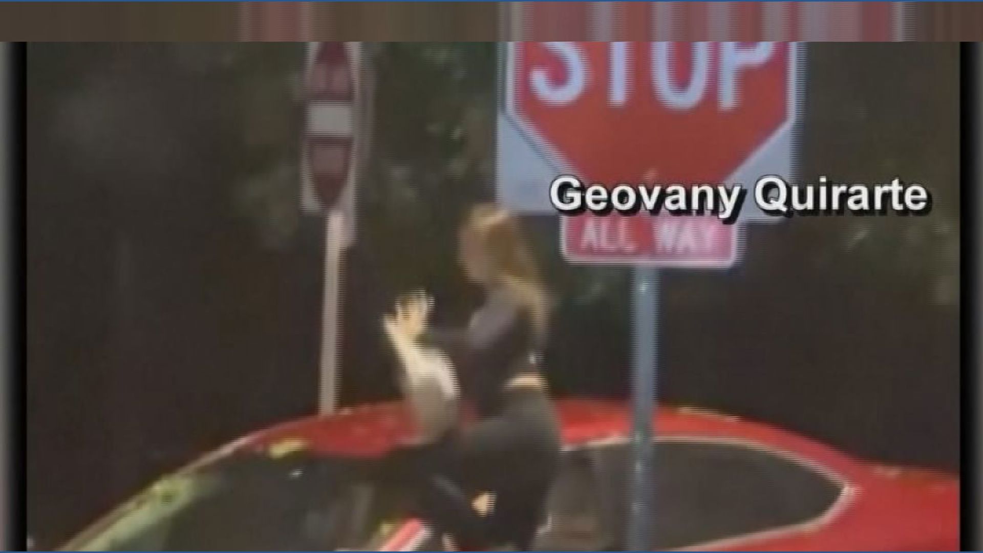 Flash flood drama: Woman climbs out of car window as storms slam North ...