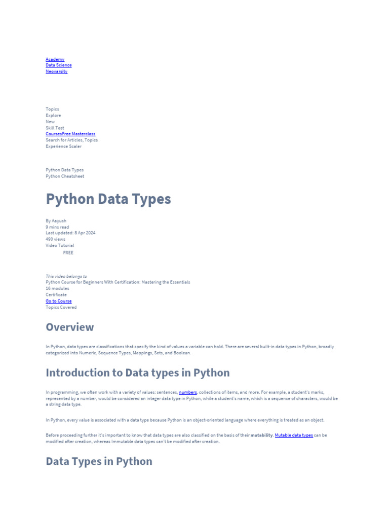 Data Types in Python | PDF