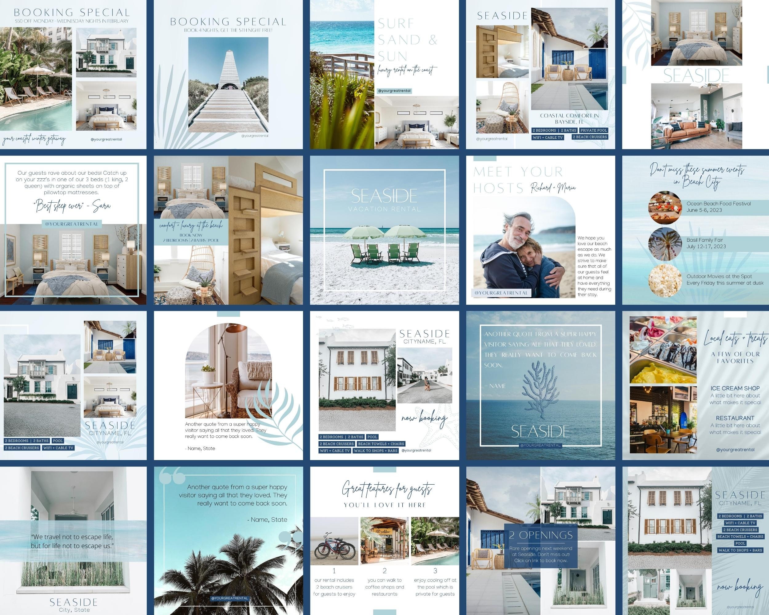 Coastal Beach House Social Media Templates | Beach Vacation Rental ...