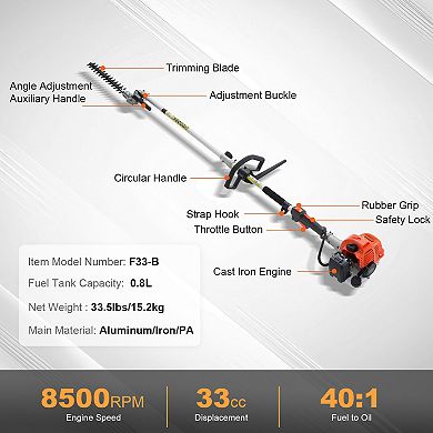VEVOR 33CC 6-in-1 Multi-Functional Trimming Tools, Gas Hedge Trimmer ...