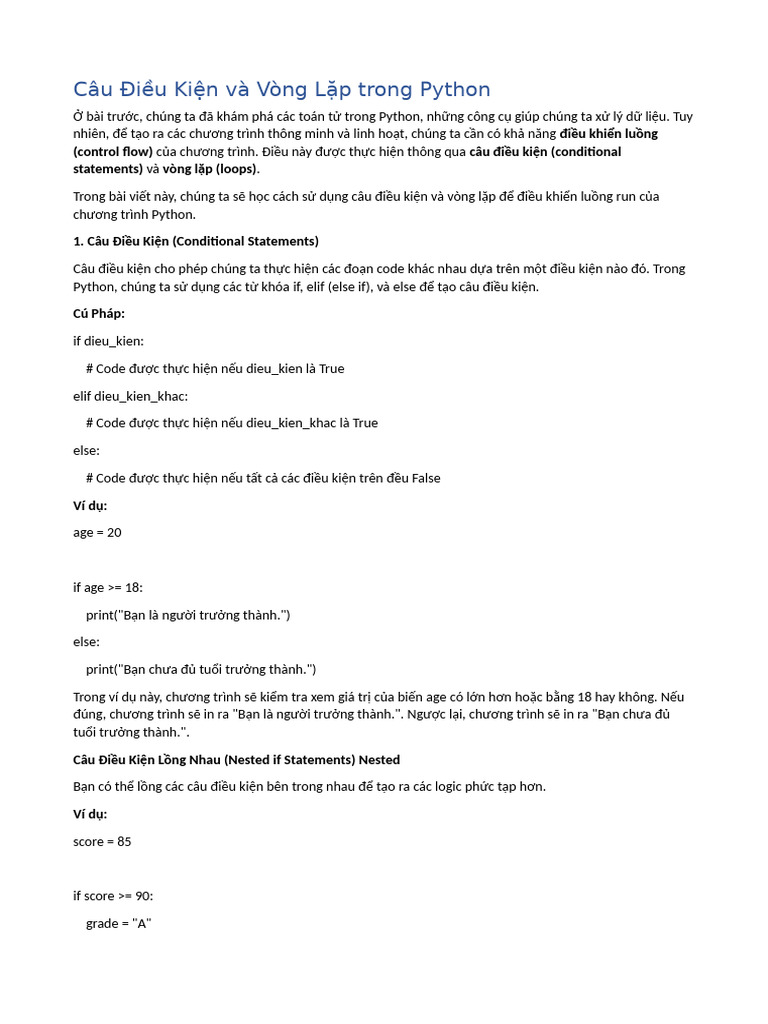 Học Python Cơ Bản (6) Câu Điều Kiện Và Vòng Lặp Trong Python | PDF