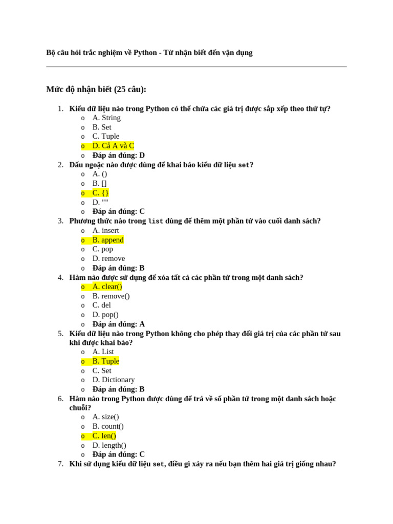 100 Cau Hoi Trac Nghiem Lap Trinh Python Co Dap An Phan 2 - 2025 - 02 ...
