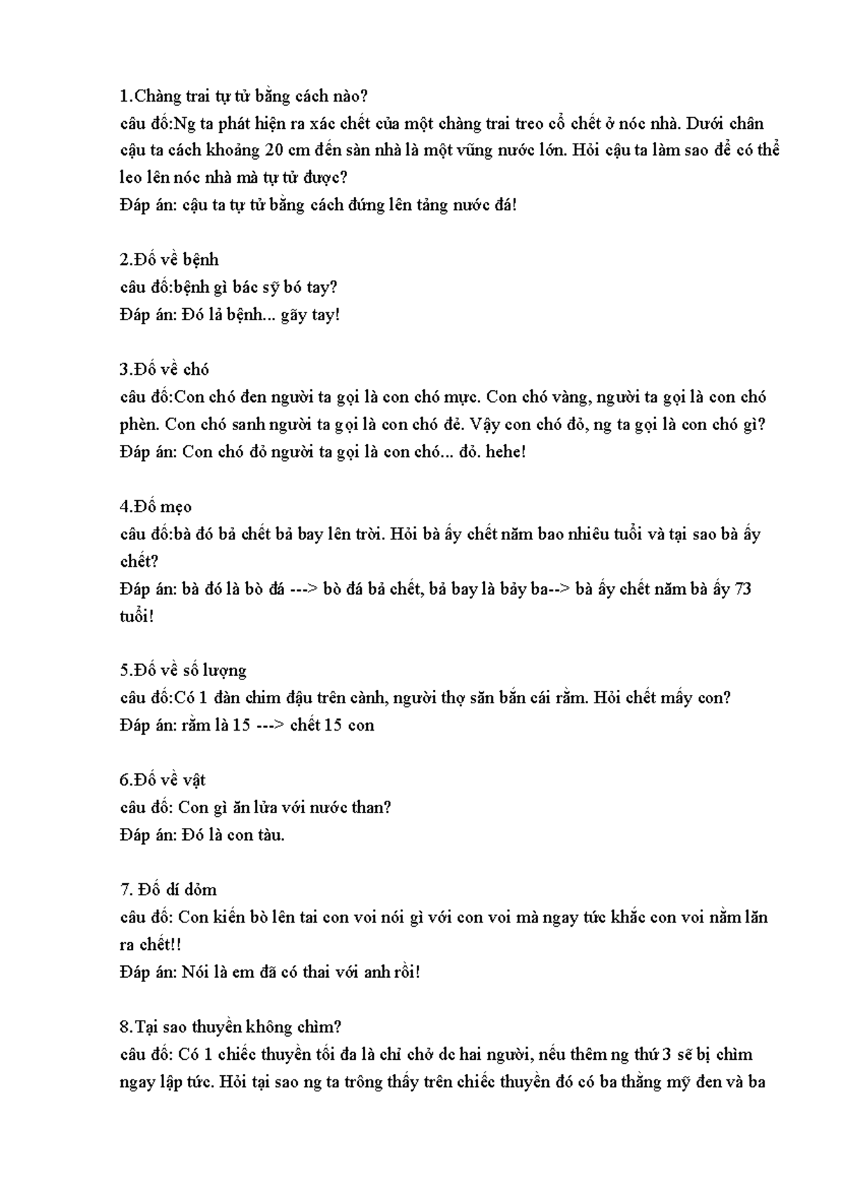 Câu Đố Vui - 123: Những Câu Đố Thú Vị và Hài Hước - Studocu