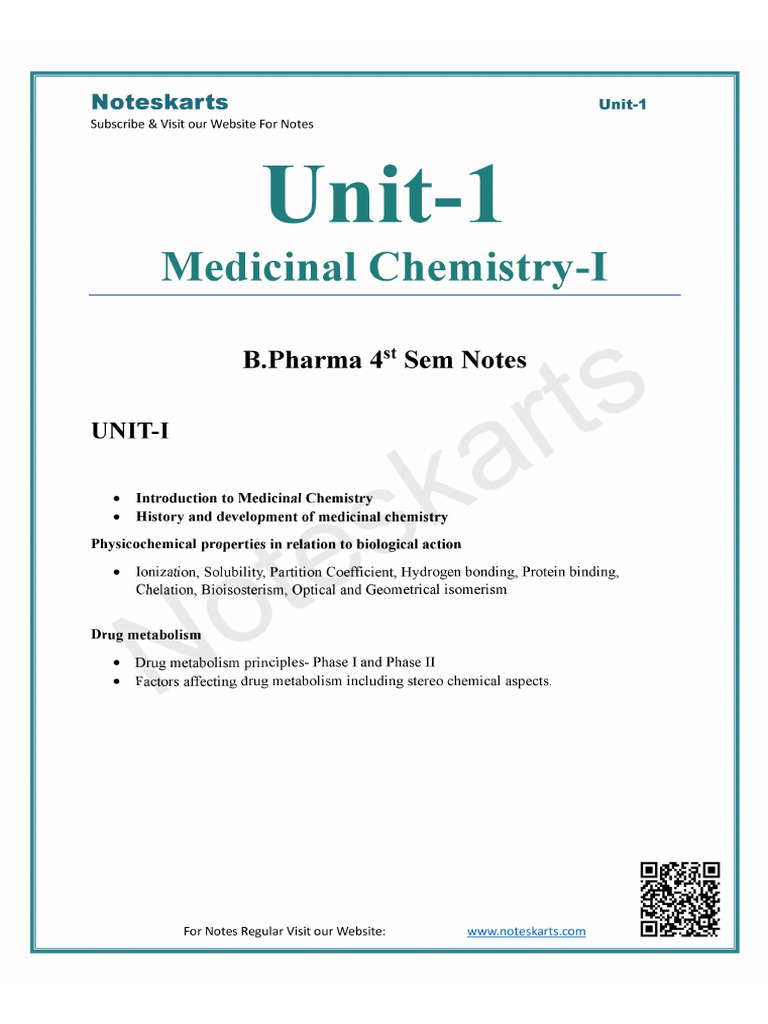 UNIT 1 B.Pharma 4th Sem Medicinal Chemistry 1 by Noteskarts | PDF