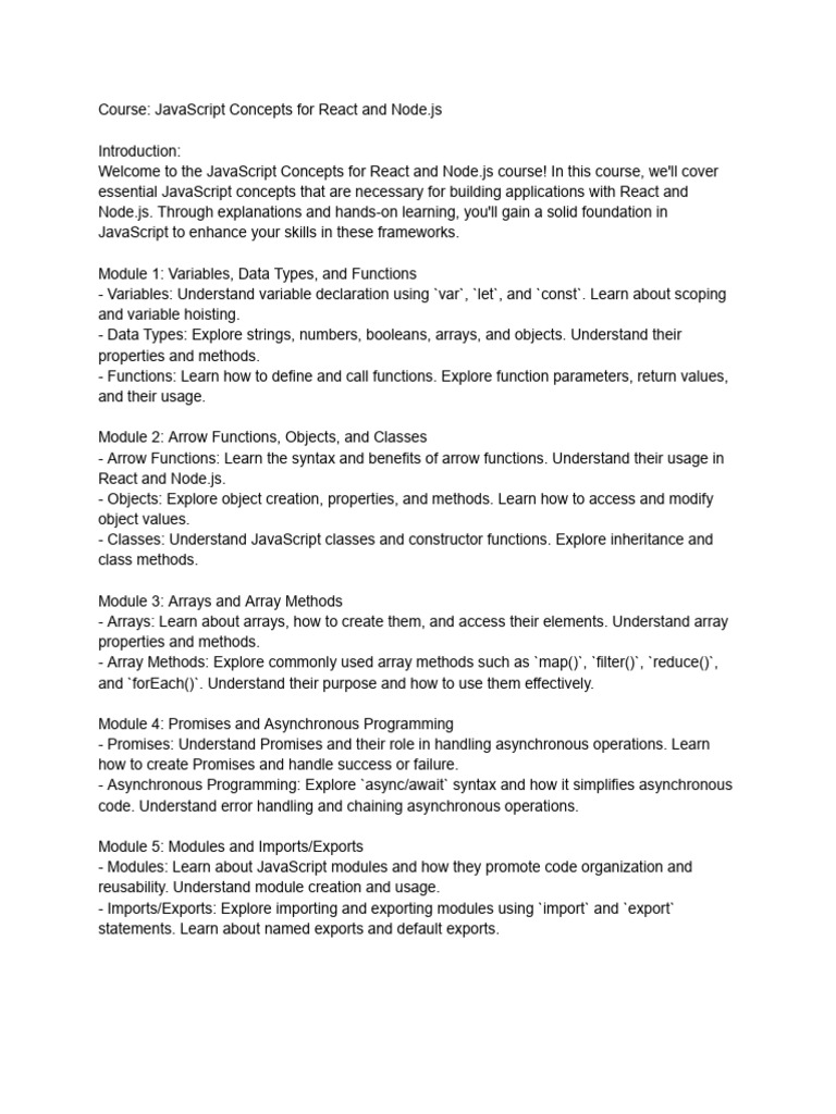 Based on this image's title: “Complete React Javascript Course Syllabus.pdf”