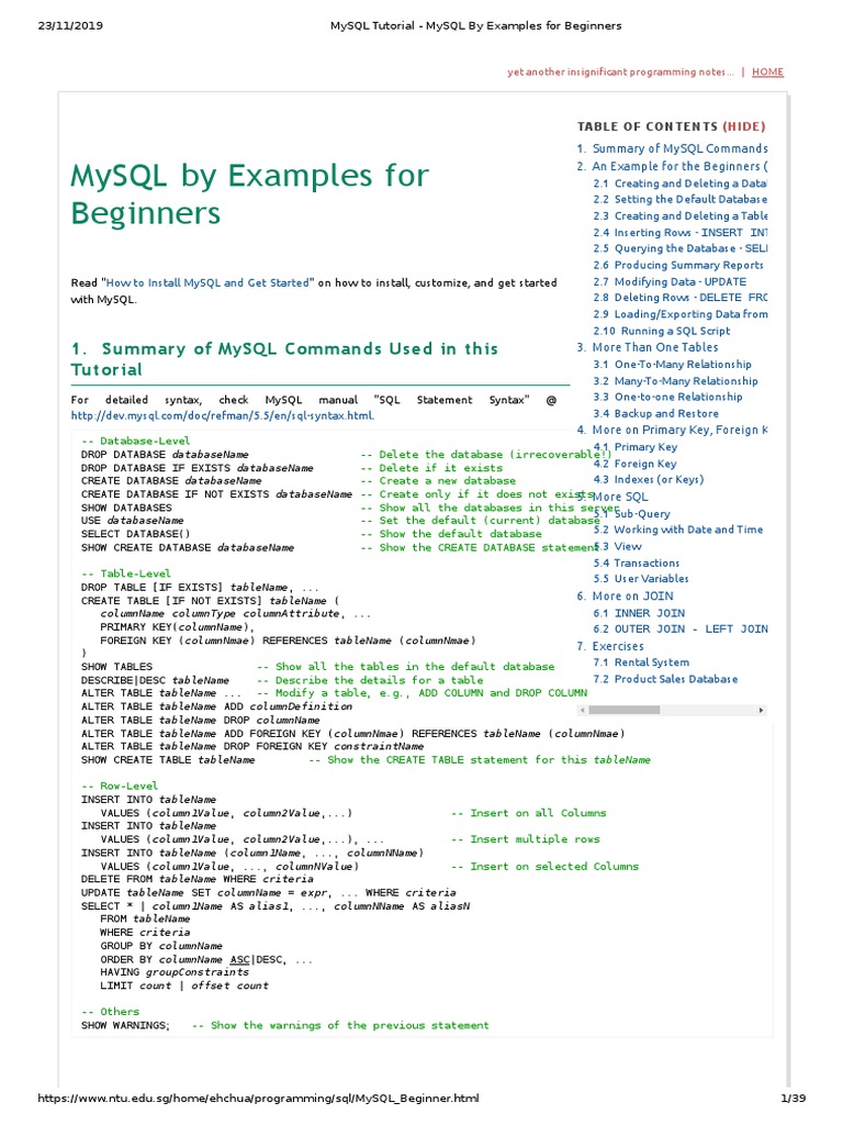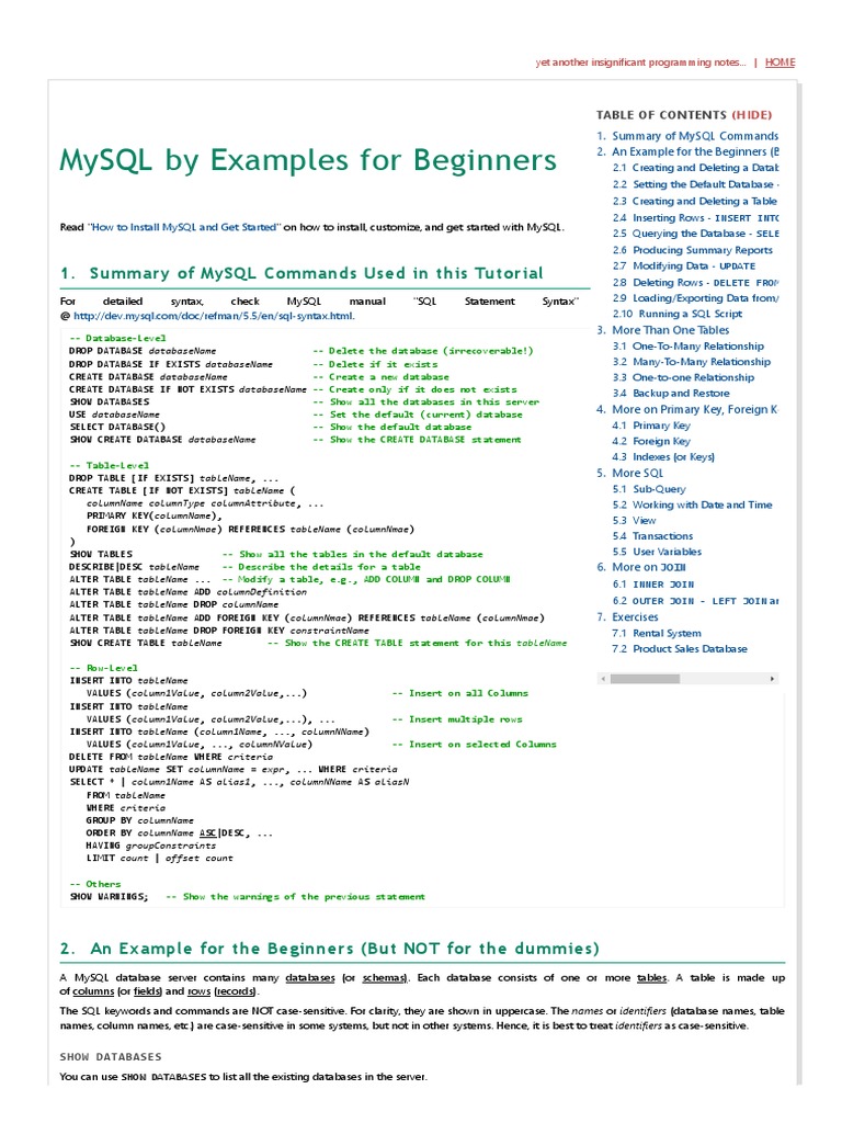 MySQL Tutorial - MySQL by Examples For Beginners PDF | PDF | Databases ...