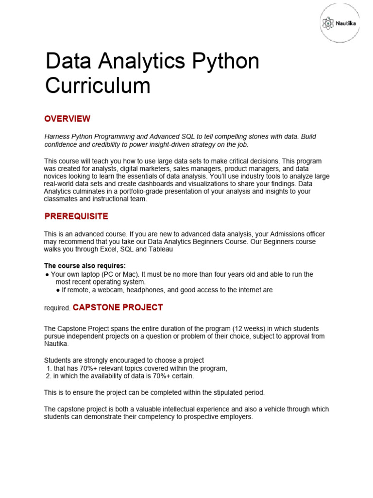 Based on this image's title: “Data Analytics Advanced With Python, Numpy and | PDF | Control Flow | Sql”