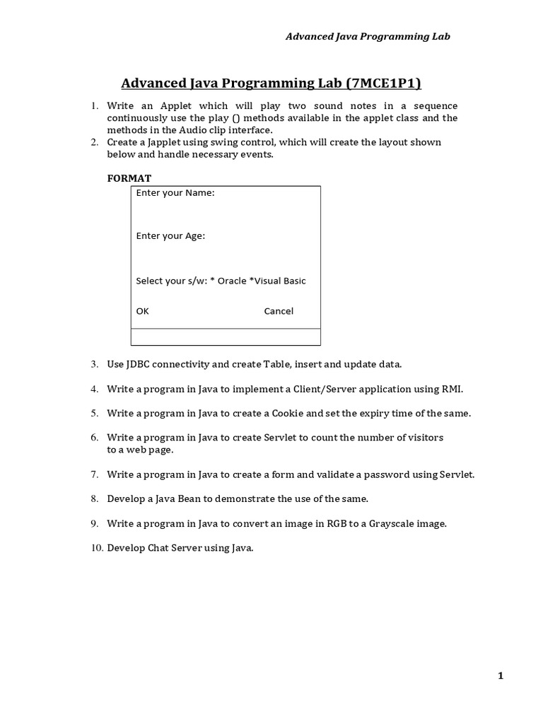 7MCE1P1-Advanced Java Programming Lab | PDF | Java (Programming ...