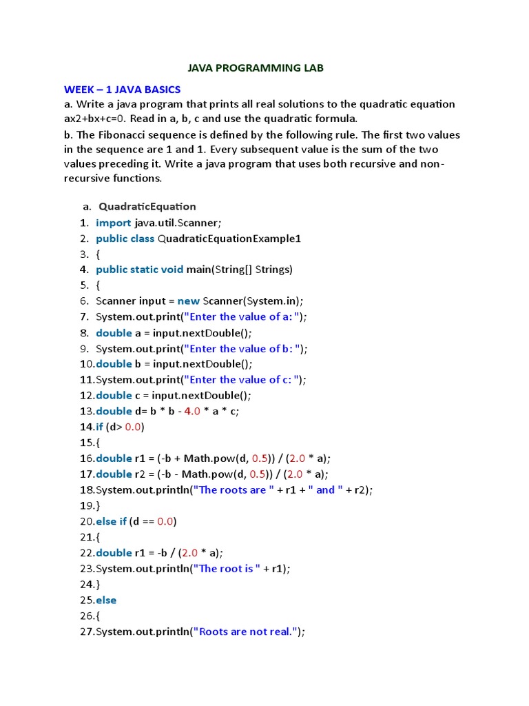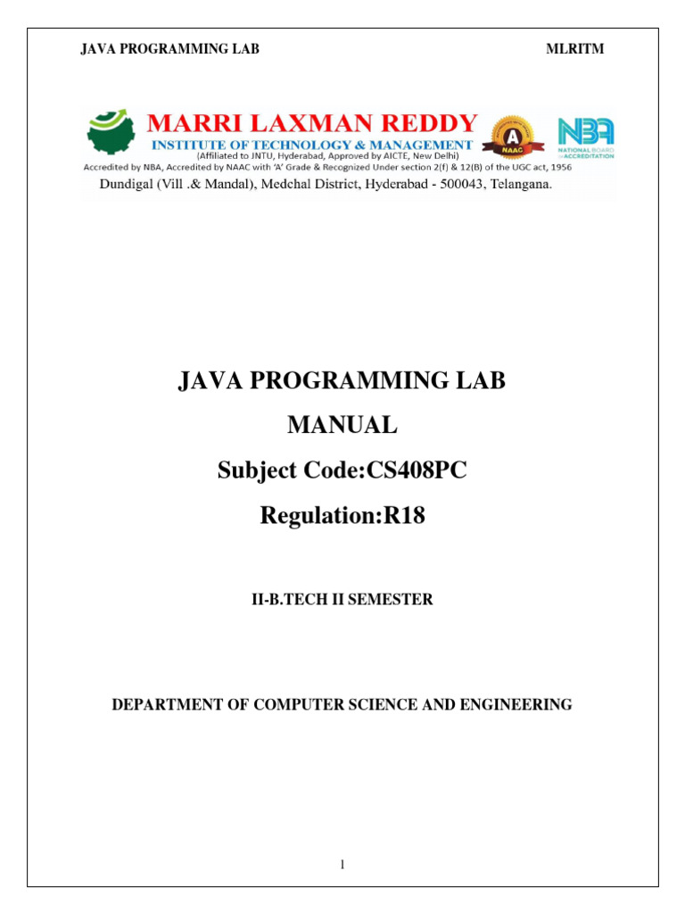 Java Programming Lab Manual R18 Jntuh - Lab Manual Java Programming ...