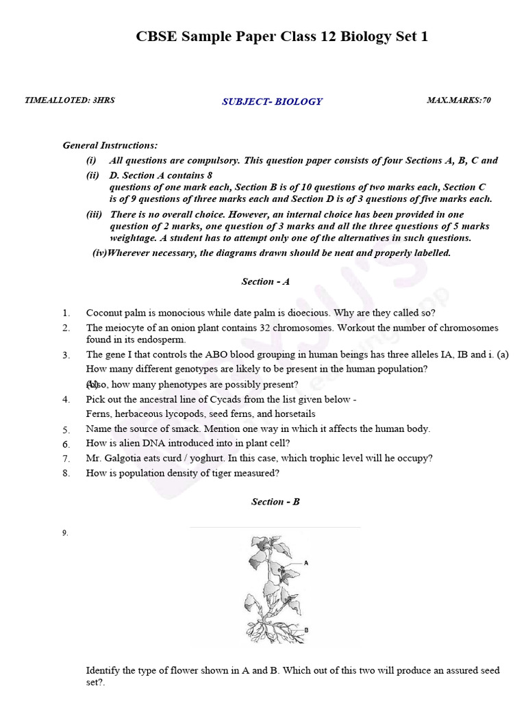 CBSE Class 12 Biology Sample Paper With Solutions PDF Download - CBSE ...