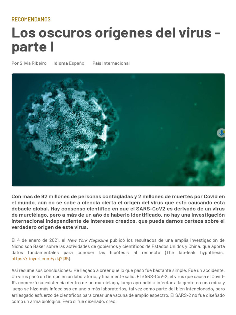 Orígenes del SARS-CoV-2: Investigación y Teorías | PDF | Virus | Medicina