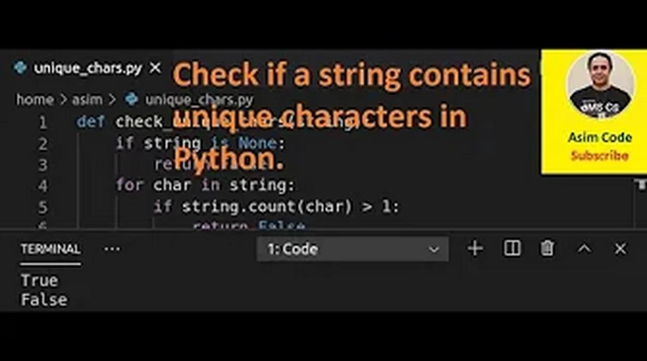 Check If A String Contains All Unique Characters | Python Example - YouTube