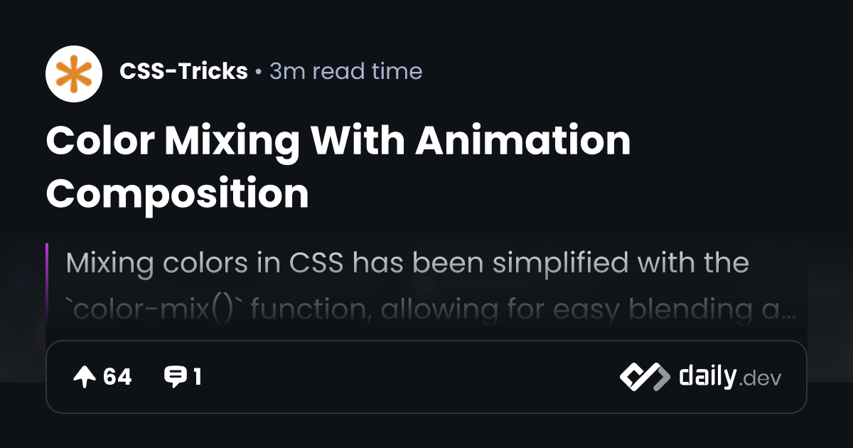 Have you explored the new CSS color-mix function yet? It's a fantastic ...