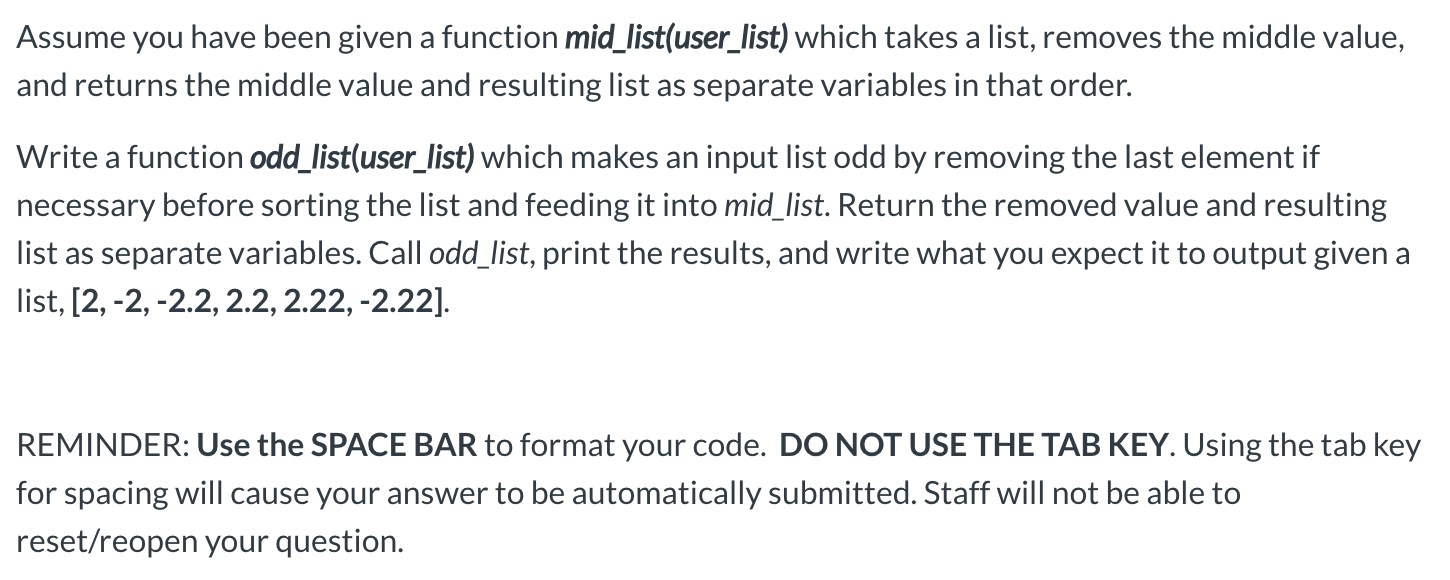 Solved Problem 1b: Practice with Python (lists) part b) | Chegg.com