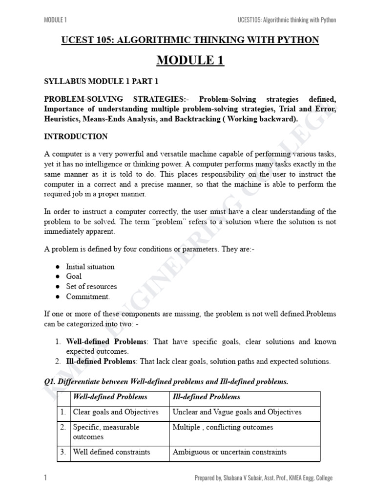 Algorithmic Thinking with Python (KTU B.Tech Semester 1, 2024 Scheme ...