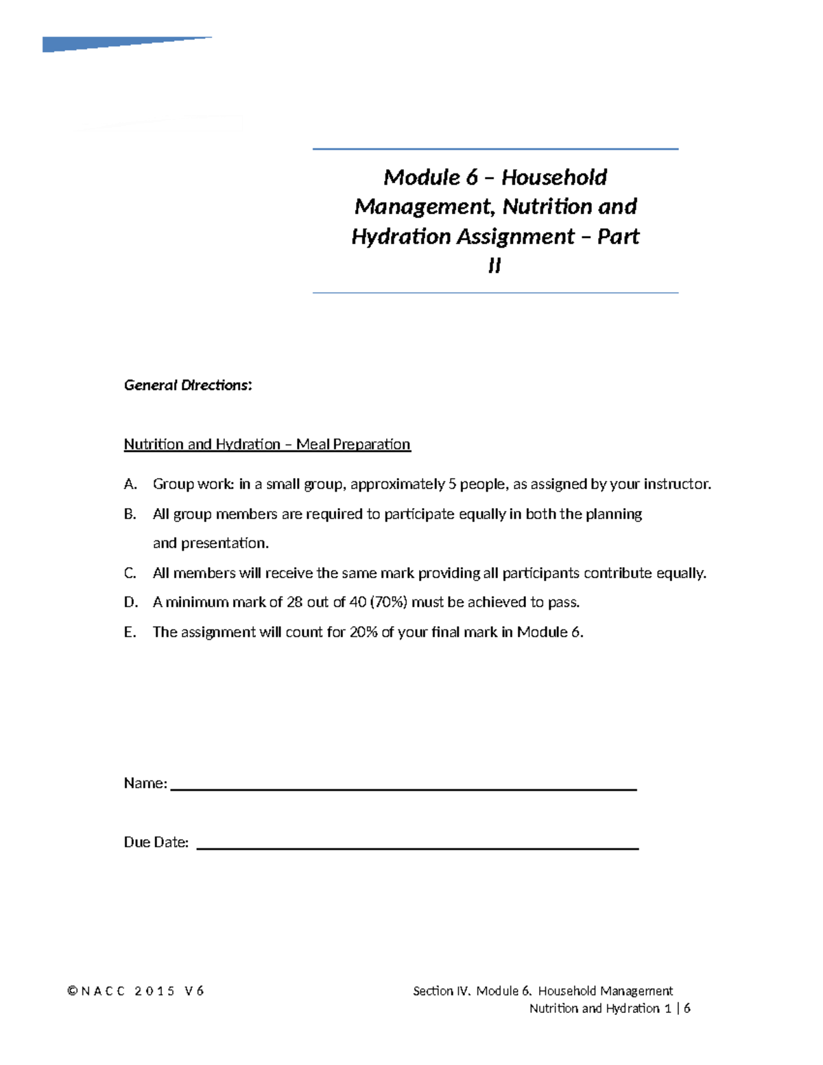 ACC 2015 V6 Module 6 Assignment II: Nutrition & Hydration - Studocu