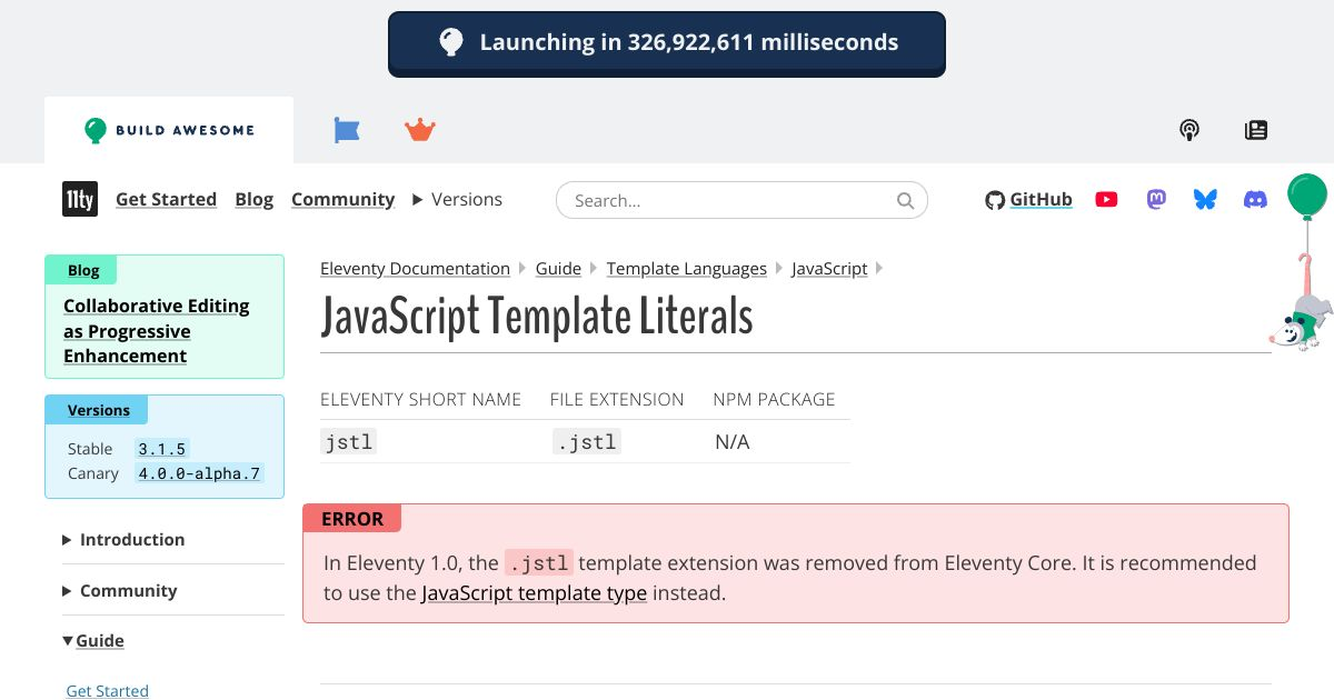 JavaScript Template Literals — Eleventy