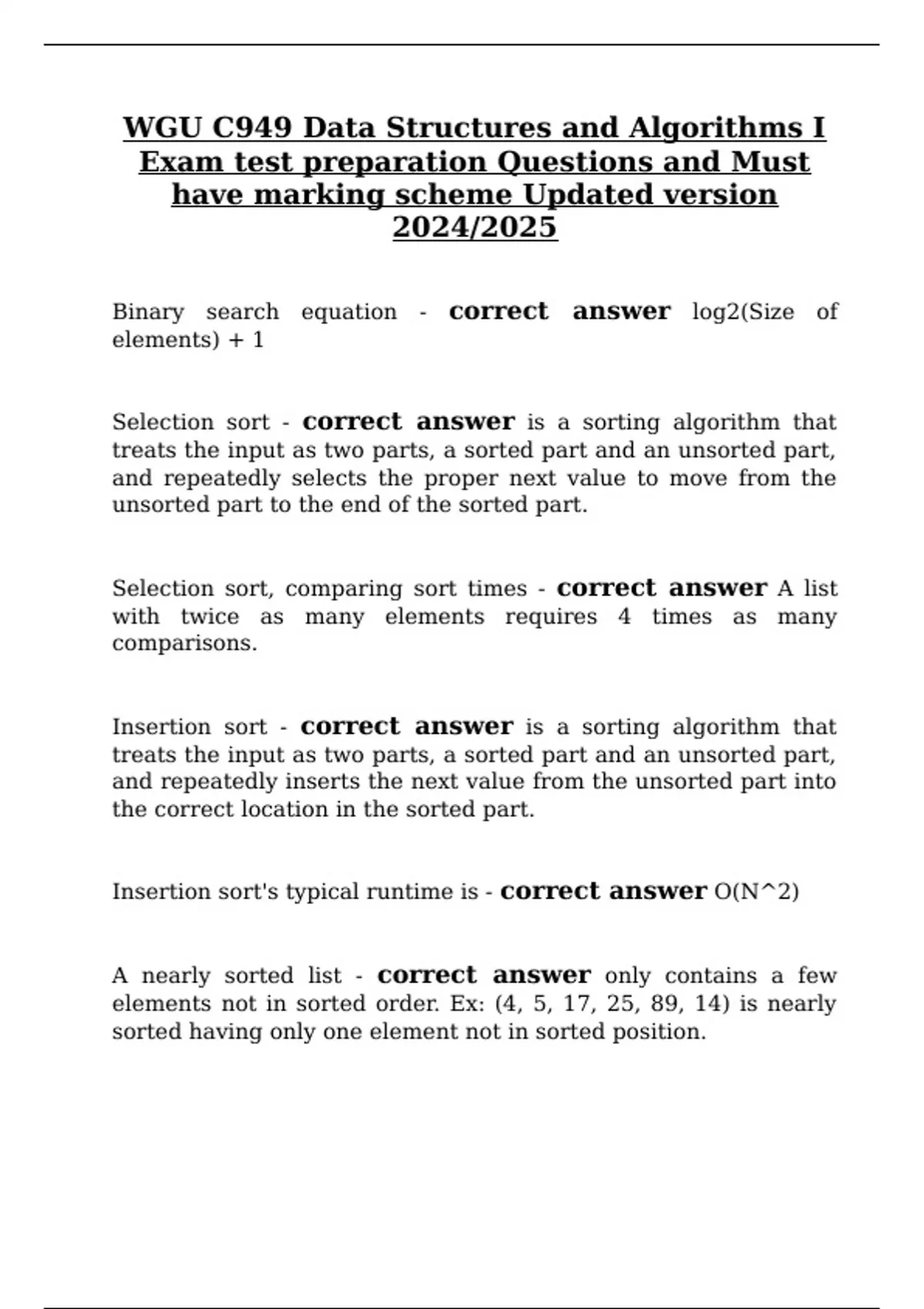 WGU C949 - Data Structures And Algorithms exam with 100% correct ...