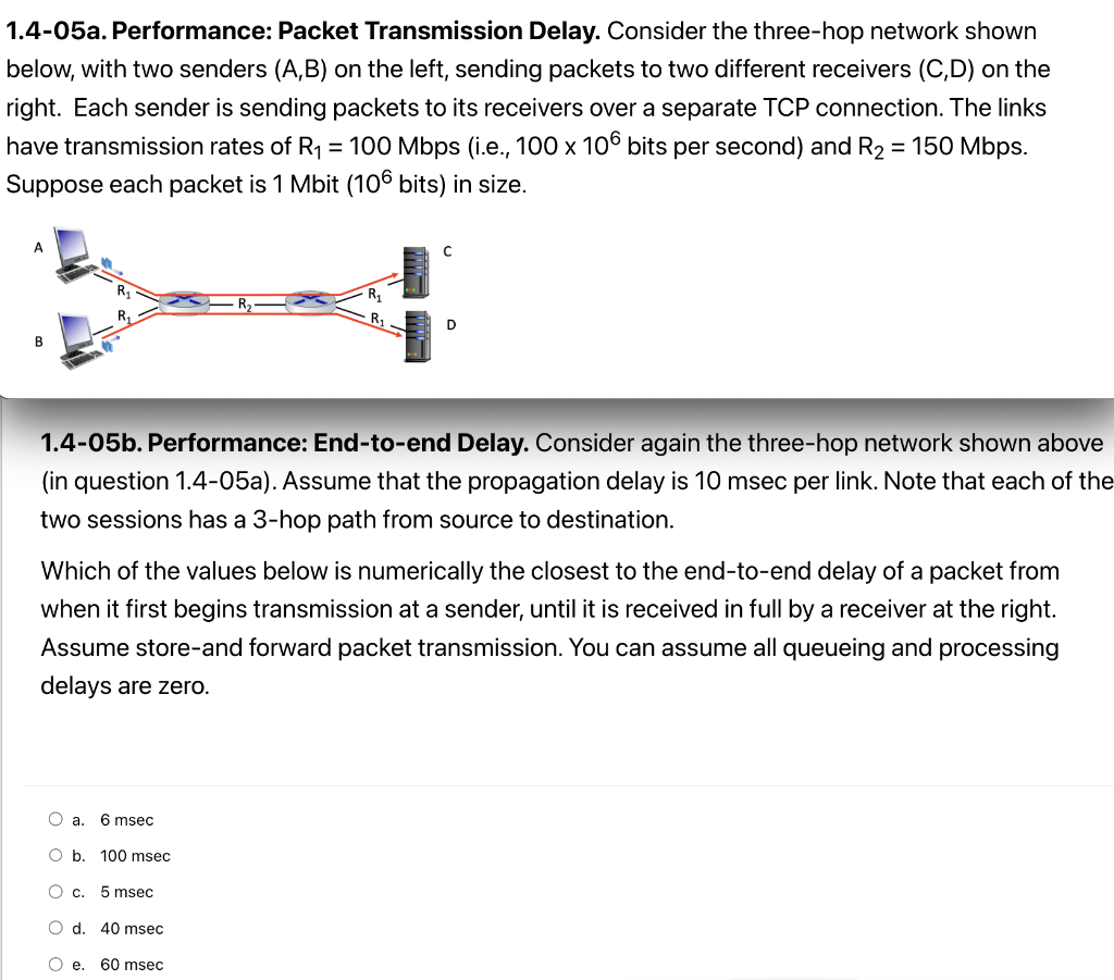 Solved 1.4-05a. Performance: Packet Transmission Delay. | Chegg.com