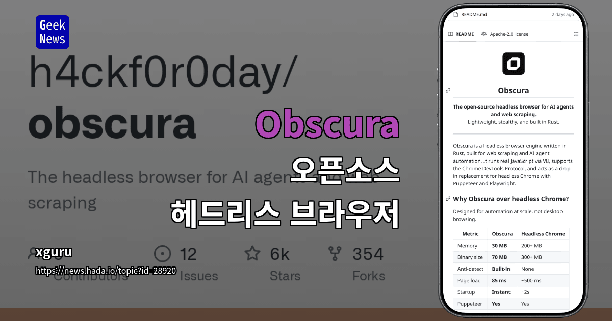 Obscura - 오픈소스 헤드리스 브라우저 | GeekNews