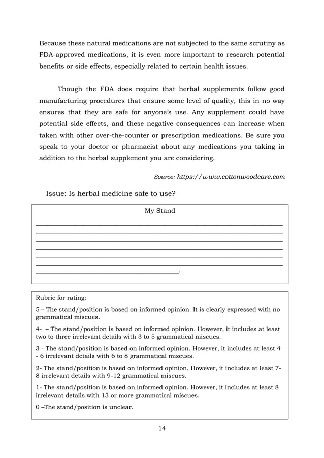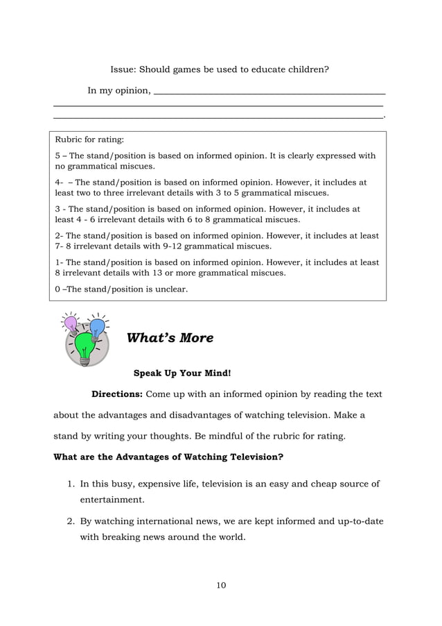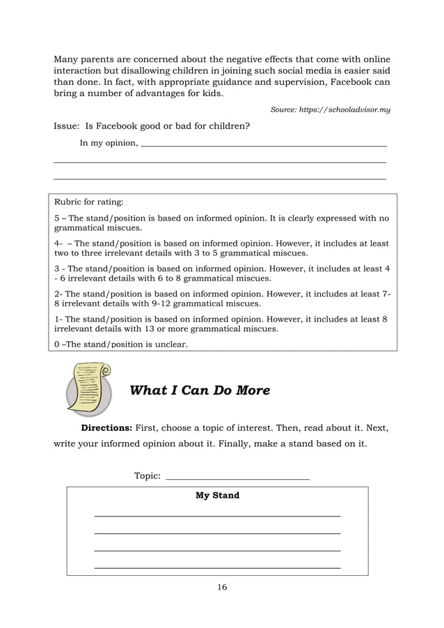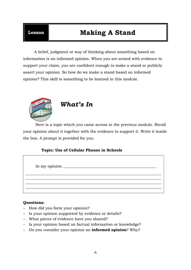 English 6 - Quarter 3 - Module 2 Making a Stand | PDF | Homework and ...
