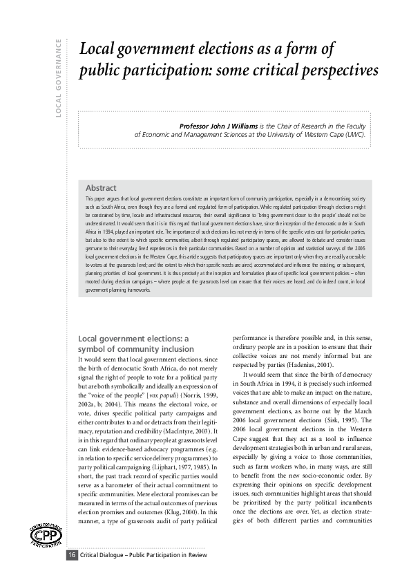 (PDF) The Youth Vote in the 2021 Local Government Elections in South Africa